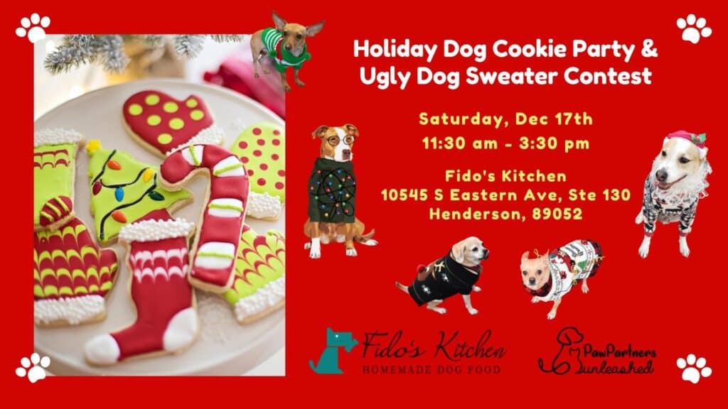 Fido's Kitchen 10545 S. Eastern Ave, Henderson, NevadaDress up your pup in an ugly sweater to participate in our Ugly Dog Sweater Contest! Every year gets better with pet parent creativity! Costume categories include Ugliest Sweater, Most Festive, Funniest Sweater, Most Creative, and Best Holiday Theme Sweater. We can’t wait to see what everyone comes up with this year! • Have fun […]
