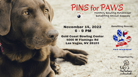 Gold Coast Bowling Center 4000 W. Flamingo Rd., Las VegasGrab your friends and family and join Paw Partners Unleashed at the Gold Coast Bowling Center for an evening of bowling fun benefiting our Rescue of the Month, Retriever Rescue of Las Vegas. We have goody bags for the first 50 guests to purchase tickets in advance online. All event proceeds benefit our Rescue of the […]