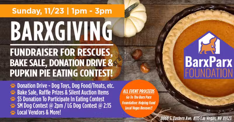 BARXGIVING: Fundraiser For Rescues, Bake Sale, Donation Drive & PUPkin Pie Eating Contest!