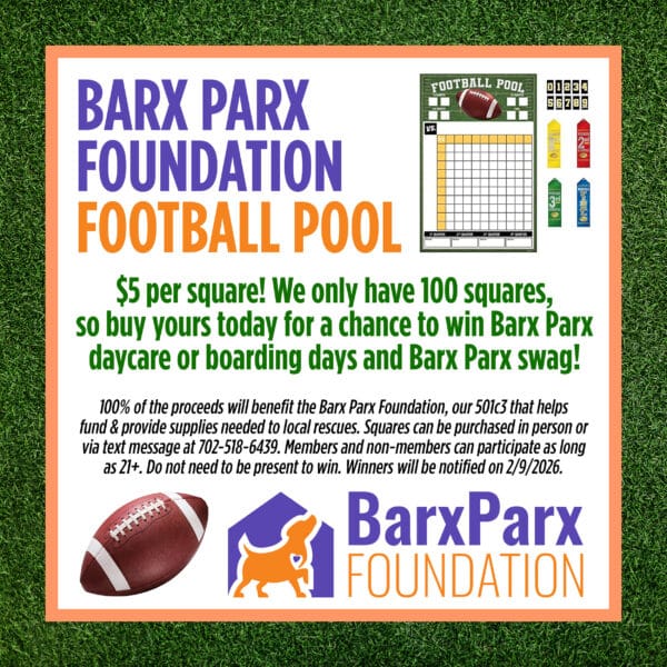 Barx Parx 8868 S. Eastern Ave #115, Las Vegas, NV, United States⚠️⚠️⚠️ Fundraiser Alert Barx Parx Foundation Football Pool for the big game! 🏈🐶 Squares are $5 each! Buy yours for the chance to win Barx Parx swag and free daycare/boarding!!! (Not to mention supporting a good cause!) Squares on sale until the game starts on Sunday, February 8th or until gone! We only have 100 […]